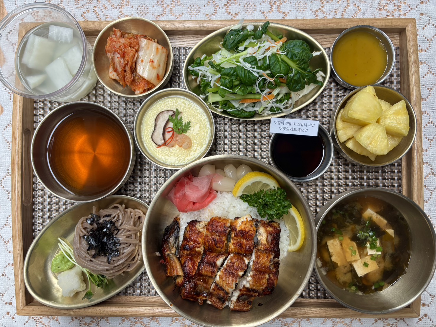 미소장국/장어덮밥/미니메밀소바/일식계란찜/레몬&초생강&와사비/비타민유자샐러드/포기김치/나박김치/계절과일